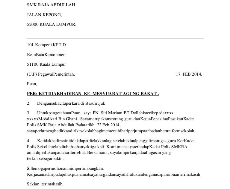 Contoh Surat Tunjuk Sebab Tidak Hadir via www.newhairstylesformen2014.com